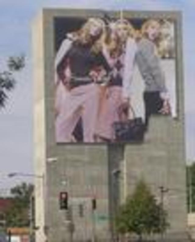 Can anyone identify which retail ad campaign this belongs to? Three blocks up Massachusetts Avenue is a Banana Republic ad on the side of the National Public Radio building. Also, do you think all the billboards around town for CNN’s “Inside Politics” and “Crossfire” draw new viewers?