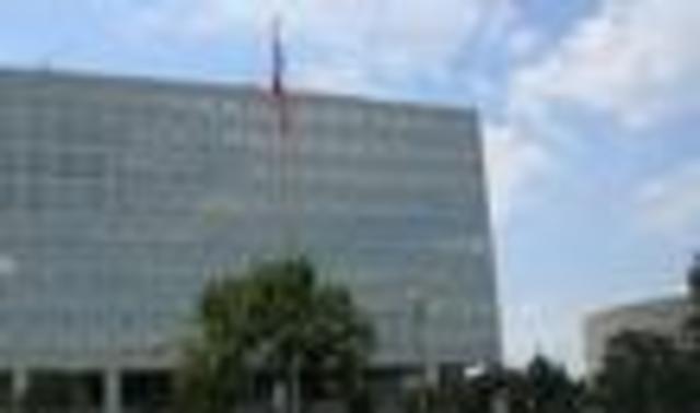 While they ran into problems shooting the Independence Avenue headquarters for the Federal Aviation Administration, DCist had no problems getting a shot when we were on an architectural photo exploration of L’Enfant Plaza and Southwest D.C. last month. (The CP was trying to get a shot of Jersey barriers protecting the building from errant cars and truck bombs; we were just trying to get a shot of the clouds reflecting off the marble and glass exterior, as you may be able to tell in this photo.)