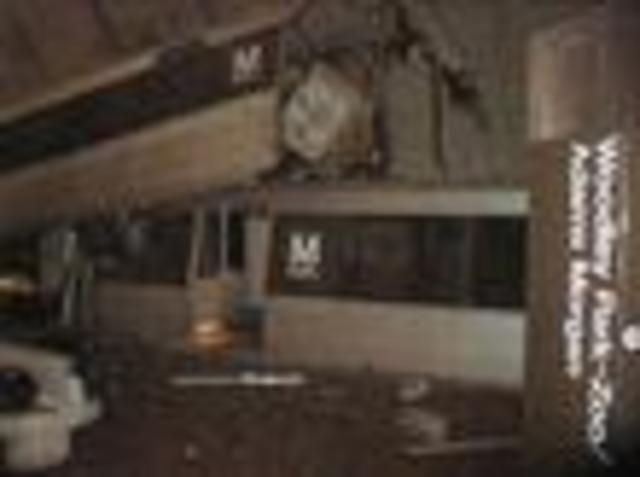 Seeing such destruction set against the Utopian-futuristic concrete vaults of the station is an odd sight, and when DCist left the station to catch a 90 bus, we were amazed by the number of people snapping photos or just standing around looking at the mess saying “Jesus Christ” or “How the hell did that train car get on top of the other?” We feel sort of sorry for the WMATA transit police guarding the trains. They seem that they could double as museum security guards with all the tourists mulling about looking past them at the work of accidental transit art down on the tracks. Check out the Post’s Woodley park crash photo gallery.