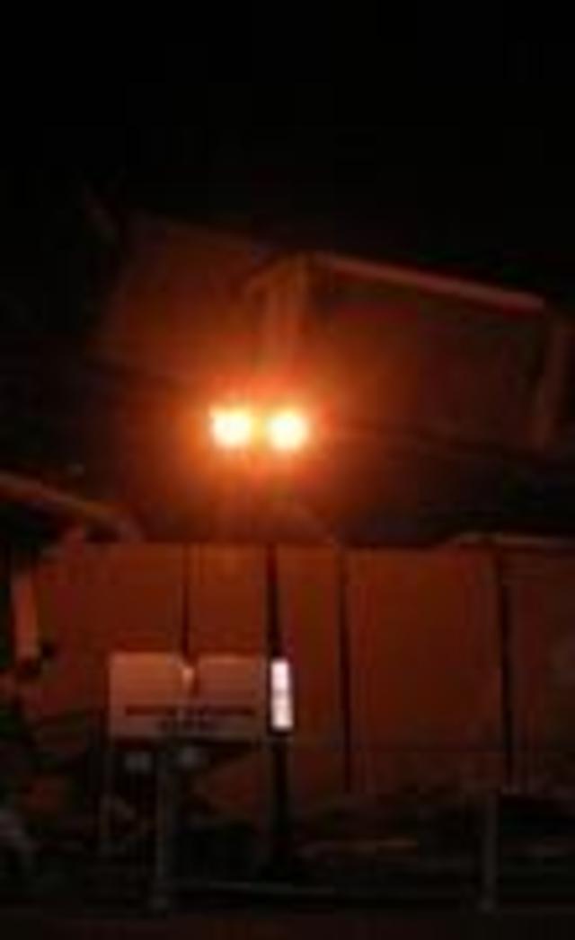 A building nobody loved imploded Saturday morning. The old Washington Convention Center, situated between New York Avenue, H, Ninth and 11th streets in Northwest, is no more. Well not exactly. Though the majority of the center and most of its New York Avenue facade fell in on itself, the H Street facade remains standing. This DCist took a quick walk-around Saturday night to gawk at the post-destruction and snapped this photo from 11th Street (We aren’t sure if the blast pushed the street lamp off its base or if it was already like that.). Roof trusses are collapsed inward, bricks litter the closed-off sidewalks. The giant loading dock doors on New York Avenue open up to fractured concrete and clear sky. It looks like, almost, a truck-bombed building in Baghdad, just a few blocks from the White House. There is still a lot of demolition to get done. (On an interesting side note, the implosion was used to test first responder communication transmissions as part of a government program to improve search and rescue techniques.)