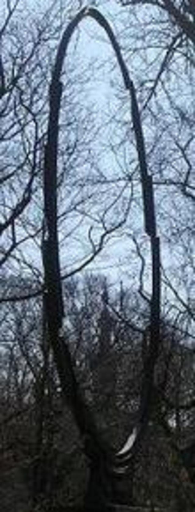 Enjoy today’s spring-like temperatures because it won’t last, says Capital Weather. We enjoyed a long afternoon walk on Sunday, where we came across this piece of sculpture in front of a house at the corner of Rock Creek Drive and Edgevale Terrace. See the minaret from the Washington Islamic Center back in the trees?
