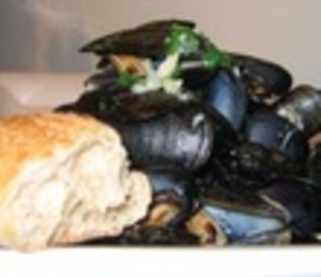It had been a while since DCist had visited Jaleo on Seventh Street NW in the District. The arrival of out-of-town guests called for a stylish lunch that would not break the bank. It was time to head back to the Spanish tapas restaurant that has remained so popular over the years. Perusing their menu reminded us of a great dish that can be thrown together quickly and on the cheap. Mussels are inexpensive, easy to prepare, and when steamed with wine yield a delicious sauce that is perfect when soaked up with a hunk of crusty fresh baked bread.