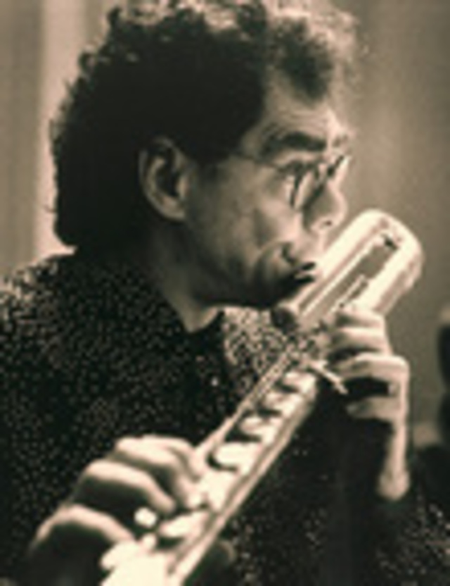 This DCist is always surprised to learn the strange stories behind how artists inspire one another. In 1957, Philip K. Dick published a novel called Eye in the Sky. Years later, composer Robert Dick, no relation to the author, wrote a hallucinogenic and extremely difficult piece for solo flute that takes its name and subject matter from that novel. As previewed in this week’s Classical Music Agenda, we heard the composer himself, who teaches at New York University, play this unusual work as part of the first concert of the French-American Contemporary Music Festival at the embassy of France, La Maison Française. As the composer explained before his performance, the novel is about “an interstellar journey” (a lab accident transports the characters into an alternate world) where, although separated from all humanity, there is still a sense of connection with others. Playing alone on a large J-shaped open-hole alto flute (the instrument shown here), he created an entire cosmic sound world: blowing through the instrument to make a wind effect, humming simultaneously to create harmonies, overblowing for overtone sounds. This arresting music, created while he was in residence at IRCAM (Pierre Boulez’s contemporary music center in the Centre Pompidou in Paris) could work very well as the soundtrack for the next Alien movie. After the concert, over a glass of wine, we learned from the composer himself that he plays the work differently every time, rather than being bound to a single notated version.