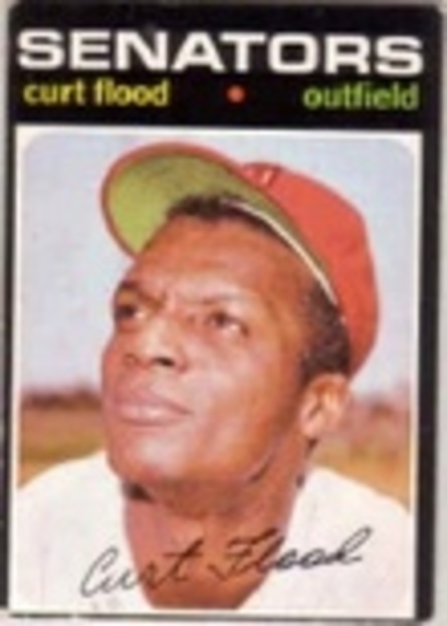 Curt Flood, while playing center field for the Washington Senators, unsuccessfully challenged baseball reserve clauses in the 1974 landmark case Flood v. Kuhn. The symbolic relevance of Flood’s lawsuit, despite its failure in the courts, helped to usher in a new era of free agency rights and multimillion-dollar contracts.