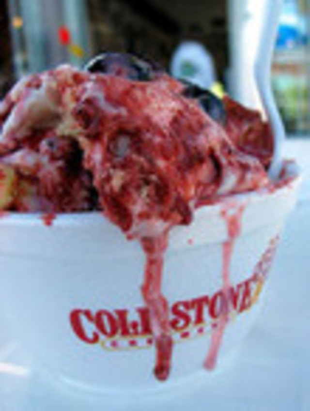 Cold Stone subscribes to a contemporary ice cream trend of using half-melted ice cream and a glut of toppings, mashed up into a bouillabaisse of flavors and ingredients, or as they call it on their website, a “Cold Stone Creation:”