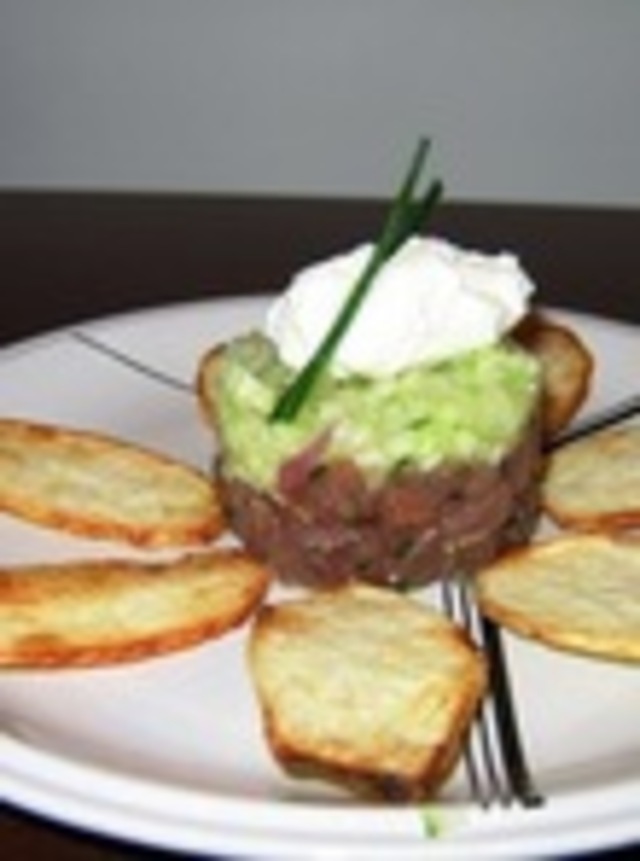 DCist finds that the ascension from a particularly heavy food hangover the perfect time to reflect on our foodie experiences, and this week we turn our sights on Zola’s Tuna Tartare. Served with finely diced cucumber, whipped lemon crème fraiche, and giant taro chips, this creative delivery is anything but your every day sushi. Prep time on this dish is relatively short, and it makes for an impressive presentation, making this tartare perfect for Eating In.