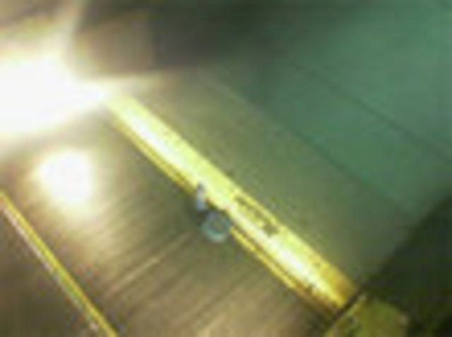 Photo of a flip-flop stuck in the Dupont Metro escalator posted to DCist photos by brownpau.