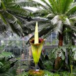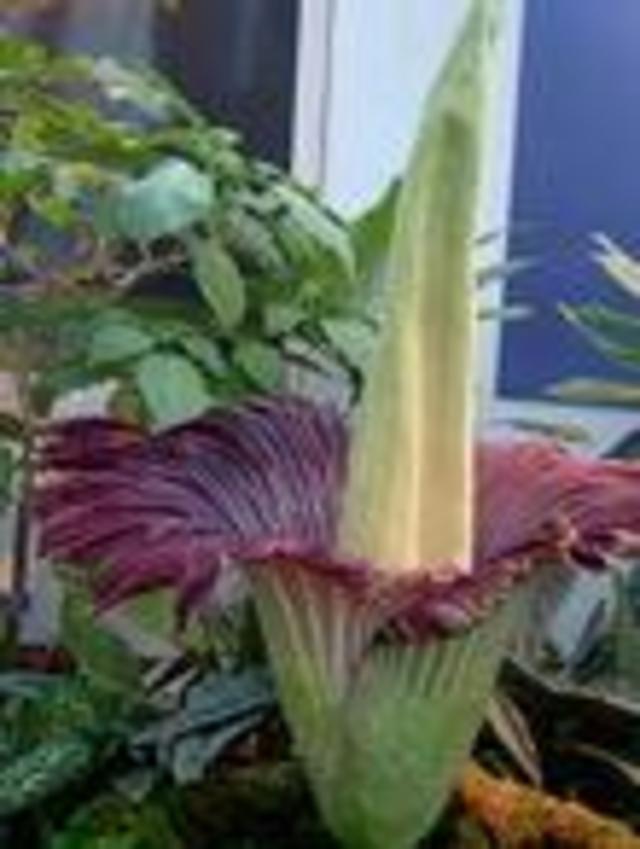 Smell Anything Unusual? You’ve seen the flower parodied in countless movies: a group of eccentric plant lovers gathers to witness the rare and brief bloom of an extraordinarily pungent flower. Far from being fiction, this scene replayed itself at the U.S. Botanic Gardens as one of their titan arum, or “corpse flower,” burst into bloom yesterday for the first time in 12 years. The flower is expected to last 24 to 48 hours before closing up. The Post stopped by yesterday but found some visitors underwhelmed by the smell, which they describe as “long-dead rat with just a hint of brie.” To share the news the Botanic Garden has set up a webcam accessible on their website, as well as photos from 2003, the last time one of garden’s titan arum bloomed. This photo of the flower was posted to DCist photos by Flickr user Pattista.