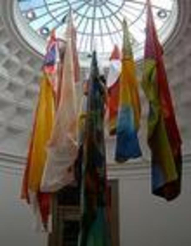 Good morning, Washington. This photo is of an installation at the Corcoran Gallery of Art by artist Sam Gilliam, as part of a retrospective on display through January. The photo was taken by Flickr user pattista. Today will be partly cloudy and windy with highs in the 40s.