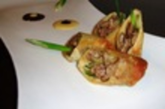 And so, we settled on recreating their tasty duck spring rolls – not in small part because of how short the shopping list for the dish is. At only nine ingredients, it’s perhaps our simplest recipe yet. And if you’ve ordered Chinese take-out recently, you probably already have the requisite packet of spicy Asian mustard in your fridge! Although Bangkok 54’s menu incorrectly cited plum sauce as an ingredient (it’s actuallyaka hoisin), the error terminology was only a minor distraction in completing the task at hand. Tender morsels of duck share space with cool cucumber and crunchy green onion. Bangkok 54 ditched the traditional spring roll wrapper for a thin pancake usually paired with roast duck. The result is a substantial appetizer.