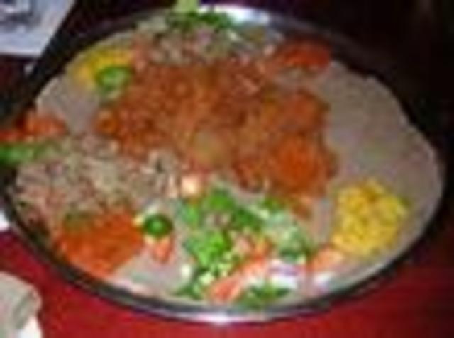 The menu consisted of a number of pork and beef dishes prepared in traditional Ethiopian styles (Kitfo, tibs, and the like), but no chicken. The two meat dishes we ordered were served with a traditional tomato salad and lentils, along with plenty of fresh injera. While we’re far from an expert in Ethiopian food, our order was freshly prepared and flavorful. The best part? The tab for a very hearty meal for two came to $21. Although the restaurant doesn’t have the biggest menu (Dukem) or the most romantic atmosphere (Etete) we’ve seen, Queen of Sheba delivers on excellent, reasonably priced Ethiopian cuisine.