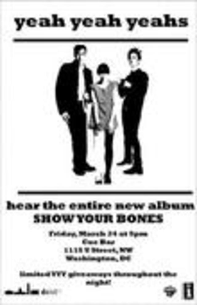 Tonight’s the night! You, DCist, the Yeah Yeah Yeahs — it’s a magical combination. Join us in listening to Show Your Bones, potentially winning some prizes (get there early!), enjoying the always-awesome DJ stylings of The Agenda, babbling about blogging, and basking in the primary-colored glow of Cue Bar.