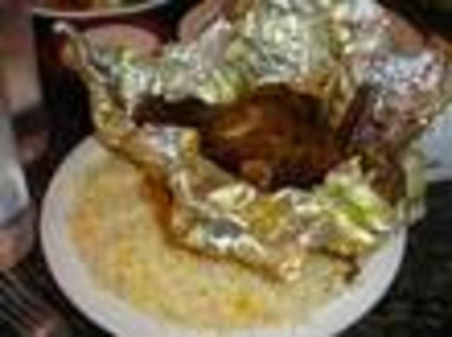 When it came to the entrees, we took the restaurant up on its advertised promise of “Whole Fresh Lamb” by ordering the maklouba and the mindi. Maklouba, which means “upside down” in Arabic, is a traditional rice, lamb and vegetable dish, where the meat is cooked underneath the rice in the pot and then inverted when served. The dish is accompanied by a small bowl of homemade yogurt, which is ladled over the tender slices of lamb. The sauteed bits of carrot and peas were a nice touch, but the fried and lightly browned florets of cauliflower were the highlight of the veggies.