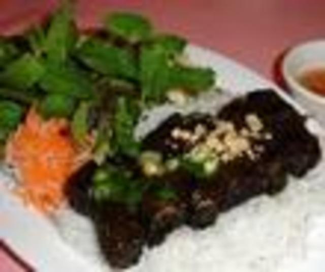 When most folks think of Vietnamese food, their minds likely conjure up steaming bowls of nourishing pho or sweet and savory meats grilled with lemongrass. We’re always up for the surly table service at Pho 75, but our absolute favorite Vietnamese dish of all time has to be grilled beef wrapped in grape leaves.