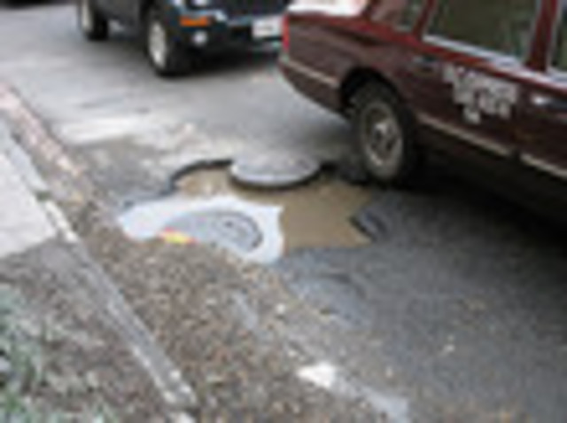 Experienced District walkers know to swerve away from the lip of the curve while passing the potholes. But those that know not of their presence of simply forget are often splashed with what is likely three-day-old standing water as a Metrobus pulls to the stop. Many a day has been ruined by these particular potholes.