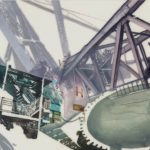 If the folks at Irvine were hoping to break in their new chairs and cushioned benches, Kim’s work will certainly get people to stay awhile. The South Korea born artist uses a wide array of media – from oil sticks and acrylics to pieces of hand-cut paper – on canvases both giant (90” x 90”) and tiny (6” x 6”). A glance won’t do it: take a seat. Each piece contains layer upon layer of dynamic strokes, delicate flowers, and tight geometric patterns. Kim takes the viewer on a ride with her work, which tends to flow in a circular pattern around the canvas, yet each section is carefully aligned as if on a Cartesian graph. The chaos you find on your first impression is not impenetrable; you’ll find something new every time you take a closer look.
