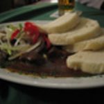 The menu offered all of the requisite German staples: sauerbraten, goulash, wiener schnitzel, Jaeger schnitzel, and, of course, a wurst platter. We took on the sauerbraten and the goulash as the dishes that would best satisfy our meat and starch cravings.