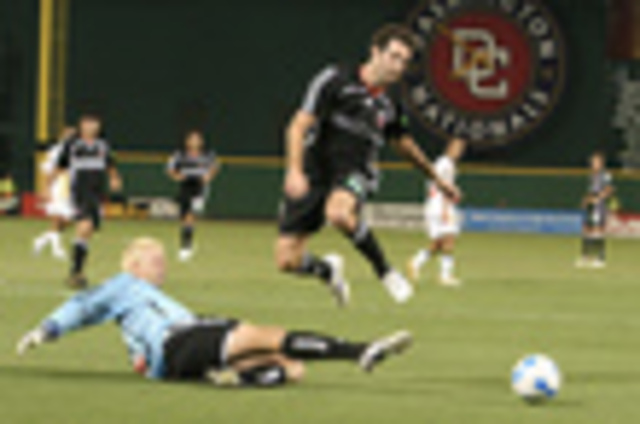 They certainly didn’t waste time, with former United stalwart Santino Quaranta hitting the post just two minutes into the match. Alan Gordon put in a Cobi Jones deflection just two minutes later to give the Galaxy a 1-0 lead. The Red-and-Black seemed stunned, but regrouped to tie the score after an own goal by L.A.’s Troy Roberts in the ninth minute, caused by an attacking run by Jaime Moreno. Luckily for United, the tie score held through halftime. Their offensive spacing was uneven and they seemed content to work the ball up the right side of the field whenever they gained possesion.