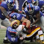 The game is likely to be cast as a victory for the Giant defense. And true, they did manage to hold Washington to 164 yards. Most importantly, however, they found ways of creating havoc on Washington’s third downs all game long. The real story, though, was the timidity of the Washington defense. In the first half, they got away with a “bend, but not break” style of play that allowed New York an easy march downfield before the clamps came down. But it seemed very obvious during the game that the defense was very blitz shy, and while it’s important to recognize that the blitz leaves big plays exposed, it’s still not wise to remove the threat entirely. Giants’ QB Eli Manning managed his game without much pass rush, and seemed relatively confident that the blitz would never come, allowing him to pick his way downfield to the tune of nearly eight yards a throw.