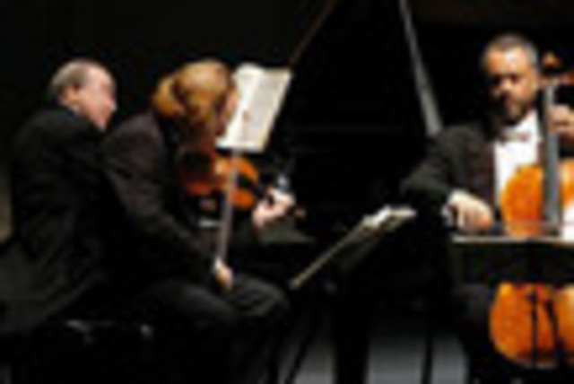 Shostakovich’s sadness at the death of his friend, who was Jewish, was compounded when the composer heard reports that Jewish prisoners in Nazi concentration camps were being forced to dance beside their graves before being shot. The Beaux Arts Trio played the second movement as something terrifyingly barbaric, filled with a blood-in-the-mouth kind of rawness and savagery. The third movement was a somber lament, and the fourth a dance of death that was suave and lithe at times, and at others a-clatter with the sound of angry skeletons dancing beside their graves.