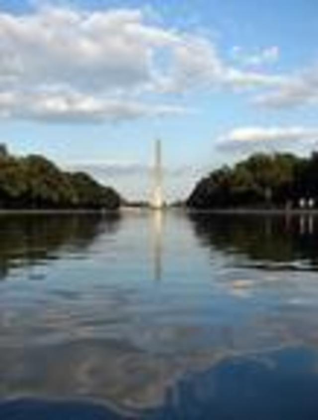 We tend to stray away from monument photos here since they get a little redundant, but every once in awhile it’s nice to see a pitch perfect shot of a monument the way you know the architect wanted it to be seen. Flickr user AlbinoFlea takes advantage of the reflection on the water, barreling your vision straight up the obelisk and on up to that lovely sky. The EXIF data is here.