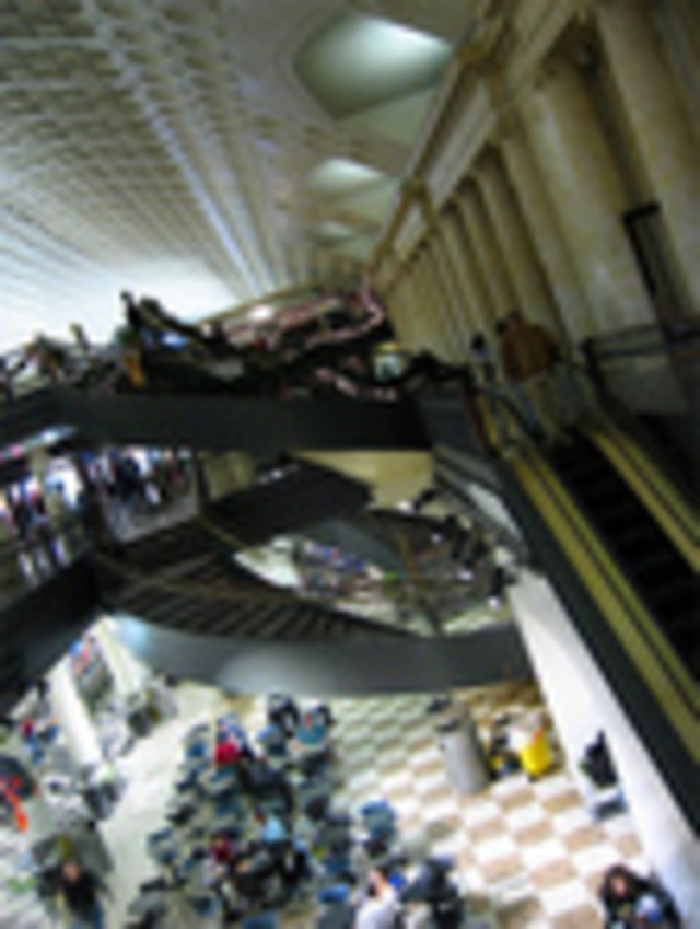 We’ve all been there, walked through it, grabbed some lunch in the basement food court, but rpongsaj has a fun, twisty photo interpretation of the Union Station we known oh-so well. Taken sideways from a balcony, I presume. EXIF data, of course.