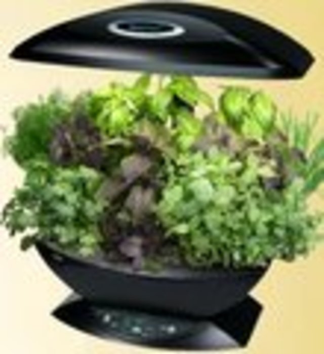 The AeroGarden, which costs about $150, is an aeroponic garden that relies on timed artificial light and circulating water to grow food plants from plastic seed pods. It’s a bit like that marijuana greenhouse that your shady college acquaintance Jason set up in his dorm room closet — except that the AeroGarden and its produce are entirely legal and the NASA-tested technology behind it is a touch more advanced.