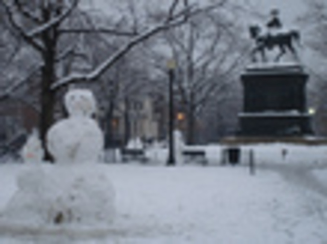 For awhile, the snow falling around the D.C. area was that great mix of beautiful and easy to pack. A number of folks around Logan Circle seemed to get the same idea in their heads — make a snowman. The circle was home to about a dozen round, chilly people on Sunday, with a few small groups, a couple tall ones, a fort or two and a
