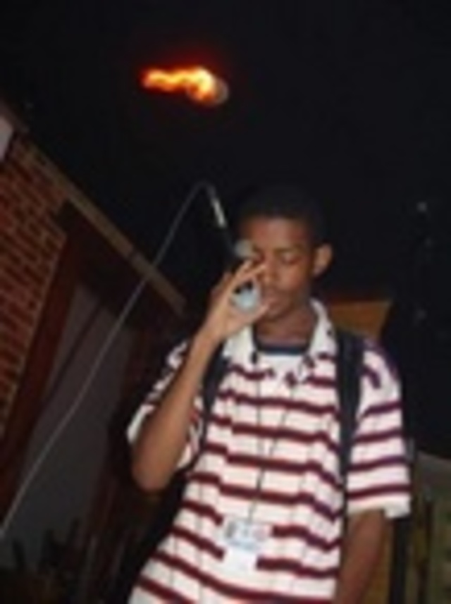The handsome grandson is skinny, with a wide grin and ears that stick out from his head. When he gets amped-up during a song, his eyes sometimes take on a menacing look. In contrast to the sleepy, laid-back flows of 50 Cent or LL Cool J, for example, Flex’s style of delivery is an acerbic staccato. He shuffles back and forth on stage, rapping with the urgency of someone treading water. But between songs, the smile returns, and Flex goes off on entertaining tangents about fist-fights and MC battles. At one point, DJ Idol Hannz interrupts: “Flex Mathews for president!” Flex smirks, “He’s saying that because I talk too much,” then moves on to his next song.