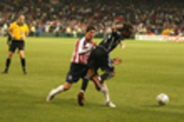In a game that could only be described as a battle, D.C. United and CD Guadalajara fought to a 1-1 draw last night at RFK, thanks to a Luciano Emilio goal in the 91st minute. In front of a raucus 26,528 (last year’s largest crowd was 24,150), the majority of which were Chivas supporters, the two teams clawed, pushed, and hacked their way through the inclement conditions (rain, 44 degrees).