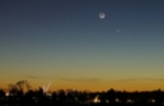 Flickr user philliefan_99 is a photographer after my own heart with this image of the crescent moon and Venus in the evening sky. If the sky had just been a smidgen darker, Mercury would have been bright enough to be seen below our more poisonous sister planet. Still, this is a great skyline exposure, with the mild blue swath of sky the ideal canvas for the relatively tiny astronomical objects. Since this photo was taken January 30 20, you won’t quite find the same sky if you step out tonight. Mercury has fallen back to an early dawn schedule, but you’ll still be able to see Venus just a little higher in the western sky in the first hour after sunset.