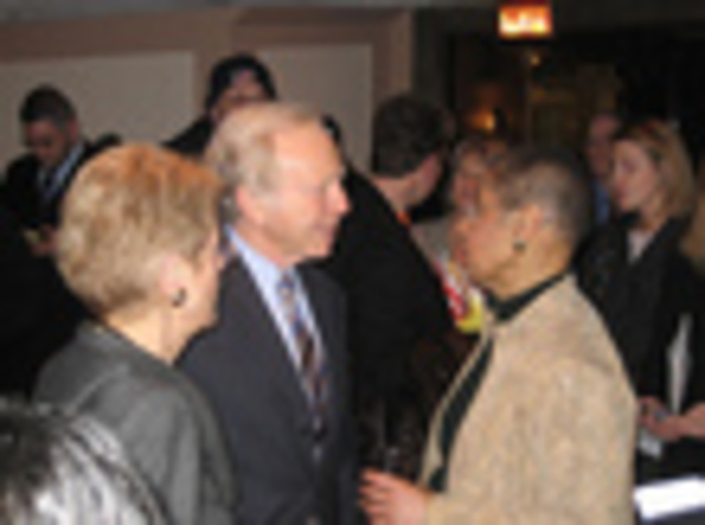 While the jury is still out on the number of people who attended for yesterday’s voting rights march, one pleasant addition to the day was a reception for organizers hosted by Sen. Joe Lieberman. About 200 people escaped the elements and made their way to the Dirksen Senate Office Building for drinks, snacks and speeches from Lieberman, Congresswoman Eleanor Holmes Norton and others.