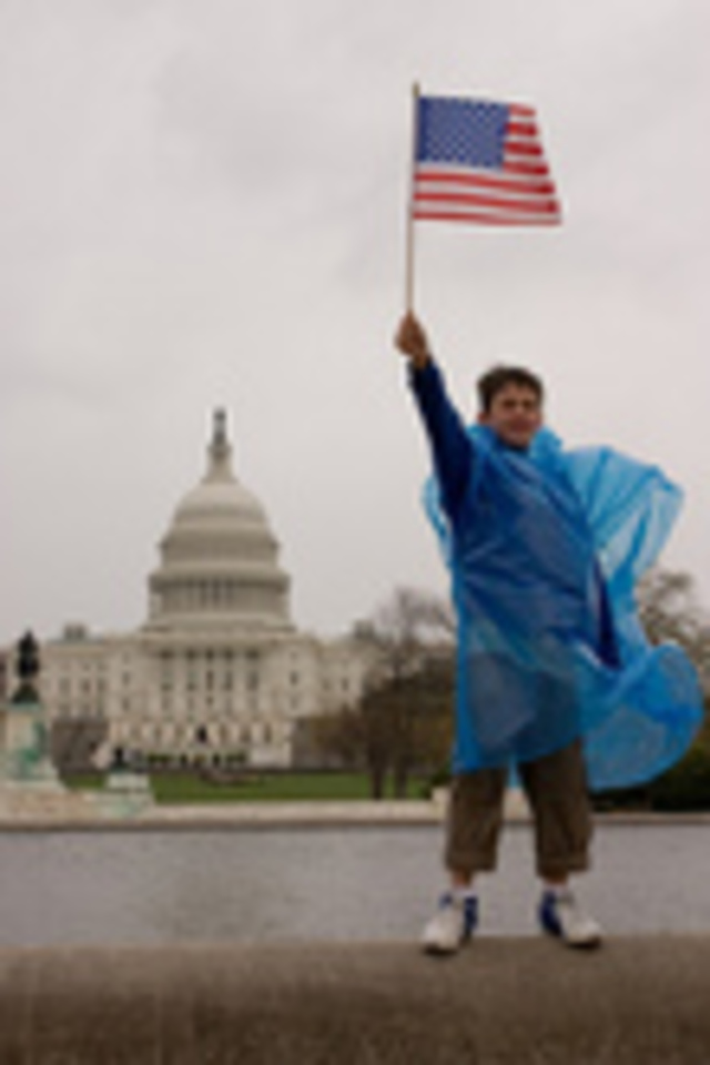 We love how defiant this kid looks in the face of an obstinate Capitol, the forboding skies, the cold wind billowing his poncho, and the impending disenfranchisement facing him once he reaches voting age. We love it almost as much as we’d love full representation in Congress. From Flickr user techne. No EXIF data available.