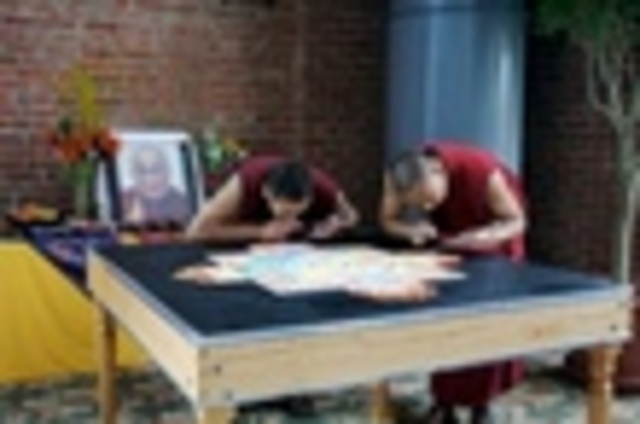 We love the quiet, calm concentration in Flickr user smleon‘s photo of two Buddhist monks working on a sand mandala, with the Dalai Lama looking on approvingly. The monks are creating the mandala at Georgetown University as part of the school’s inaugural “Children of Abraham Arts Week,” an interfaith arts festival. They began work on Tuesday, and are scheduled to complete it for a community celebration this Saturday, after which the mandala will, as is tradition, be carefully unmade. EXIF.