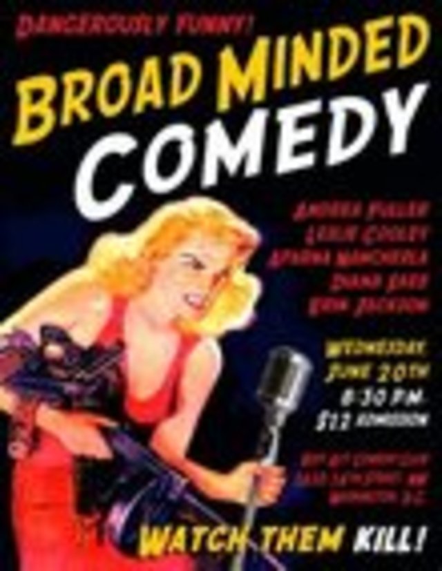 Broad Minded Comedy will begin with one show, but if — or more like when — it becomes a big deal, it might be a weekly fixture at Riot Act Comedy Club. The show is at 8:30 p.m. and admission is $12. Tickets can be purchased on their web site by clicking “tickets” or by calling 202 625-6229.