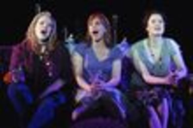 For those unfamiliar with the 80s film, starring Jack Nicholson, Cher, Susan Sarandon and Michele Pfeiffer, Witches features three women –- the brash sculptress Alexandra (Emily Skinner), the repressed cellist Jane (Christiane Noll) and the stuttering journalist Sukie (Jacquelyn Piro Donovan). They’re the only ones who have managed to resist the trappings of suburban life in Eastwick, but as a result are bored out of their minds. Almost as if summoned, a sensual stranger Darryl Van Horne (Marc Kudisch). They become a foursome (yes, sexually), and he begins teaching them other things –- namely, magic. Naturally, things begin to get sinister.