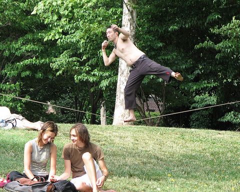 This is so great. I don’t know which part is better: the dude just randomly tightrope walking in Meridian Hill Park, or the two people engrossed in coversation like there’s not a circus act going on ten feet behind them. We need more information! Has anyone else seen this guy besides our photographer Kyle Walton? Is it part of a formal act or is he just practicing? Does he do parties? EXIF.