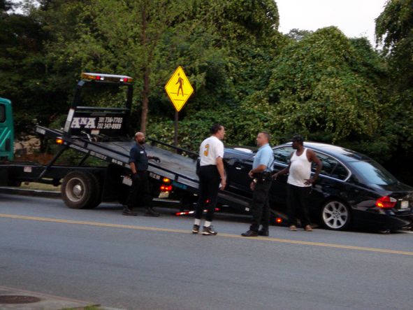 While playing softball down by the FDR memorial this evening, my team was a little shocked when we saw a park policeman not only issue a ticket to an illegally parked beemer, but bring in a tow truck. It wasn’t until the tow truck had scraped it’s bed underneath the beemer that a spandex-clad DC Council Member Vincent Gray came sauntering over to talk the cop out of taking his car away.