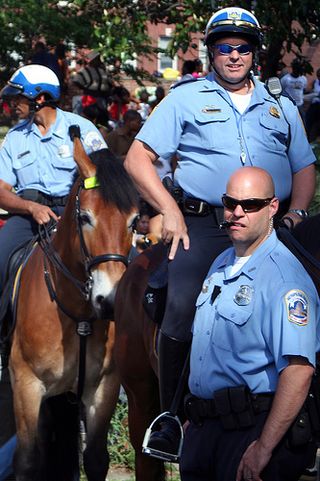 This photo by Intangible Arts is actually from the Caribbean Festival last weekend, but every time I pass it in the Flickr pool it just cracks me up. It kind of reminds us of that awesome Exposed photograph by F1.4, or perhaps a rehearsal for Police Academy 8: You Got [Protected and] Served. EXIF.
