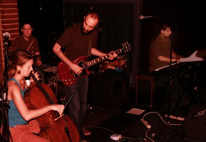 The instrumental group consists of Russell deOcampo on piano/keyboard, Ben Hoffman on drums, Gregory Rago on guitar and the post-Golem addition of Amy Cavanaugh on cello, who enhances their sound with a stunning eeriness. While continuing to compose film scores, the band morphed into a more traditional rock band and have been performing their work on stage, occasionally with visuals flashing on the screen behind them. But no film is really necessary, as their music alone tells a story. It’s not entirely menacing, and much of what shines in their dark demeanor is the fast paced drumming and riveting guitar elements that drive tracks like “Heart of a Dog”.