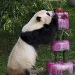 Tai Shan, aka Butterstick, is 2 years old today. The National Zoo gave the furball a birthday treat made of apples, pears, and bamboo frozen in beet juice and water — and a giant number 2 that apparently scared him quite a bit when it fell over. It’s no beersicle, but it’ll do. Happy birthday from all of your pals at DCist, Tai Shan.