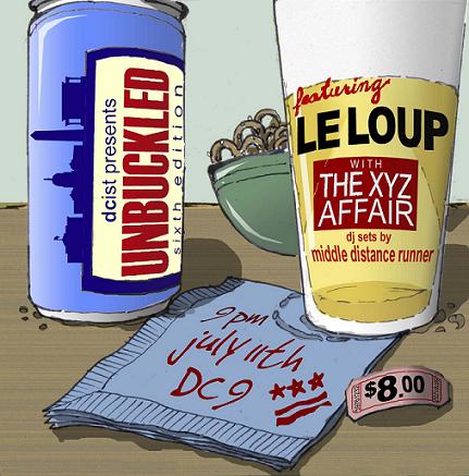 The weeks turned into days, the days turned into hours, and now we can all stop anxiously anticipating and start reveling: Unbuckled 6 drops this very night at DC9. As you know by now, Le Loup will headline, seven strong, with an opening performance by Brooklyn’s delightful The XYZ Affair. Our friends Middle Distance Runner will set the mood from the DJ booth, and, just because we like you guys so much, we’ll have a few door prizes to give out. Based on the last time we saw Le Loup at the Velvet Lounge, we’re guessing it’s going to be a big crowd, so you’d be doing yourself a favor to arrive on the early side. DCist headquarters is all abuzz with excitement, and we hope you are too. See you tonight at DC9!