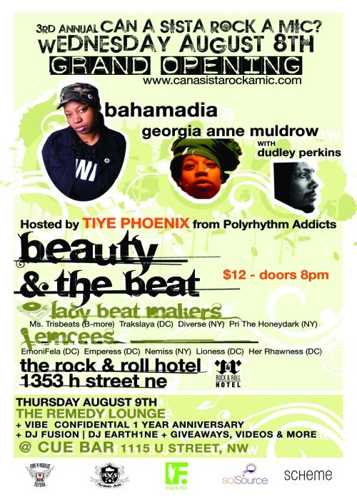 The depictions and roles of women in hip-hop debate has raged on and off for several years now with varying degrees of depth. Most of the arguments posit that the relationship between women and hip-hop isn’t positive by using lyrical content and music videos by male artists as exhibits A and B. After the requisite freedom of speech assertions made during the rebuttal, the talk dies down again and the status quo remains. Often lacking in the discussion is any mention of female artists, their art, or their opinions. Starting today and going through Sunday, the 3rd annual Can A Sista Rock A Mic? Music Festival will serve as a platform for some of the most talented female rappers, singers, DJs, and thinkers from D.C. and beyond to remind everyone they shouldn’t be overlooked. Keep reading for our picks of the festival’s best offerings.