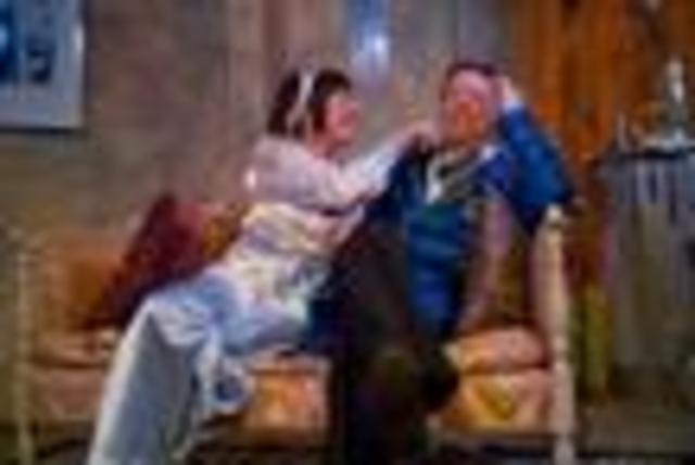 The pair, as former married couple Elyot and Amanda, provide quite the dose of crackling tension. The set-up for Private Lives is knowingly implausible -– the two wind up at the same resort, on their honeymoons with new spouses. But Private Lives is much more a recreational sparring match (and sly commentary on love’s underlying layers of hostility) than it is a plot-driven piece.