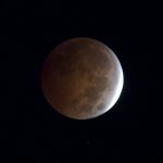 At 4:51 a.m. tomorrow morning, the Moon’s eastern limb (its left edge) will begin to enter the Earth’s shadow. About ten or 20 minutes before this, the Moon will be in the Earth’s penumbra. Chester says the Moon will take on a “subtle gray shade” during this time, but you’ll have to look close to see it, as the Earth’s penumbra is very diffuse. Between 4:51 and 5:52 a.m. is the period of the Moon’s partial eclipse, and at 5:52, totality begins. The Moon will start slipping below the horizon as this happens, and will be in total eclipse until moonset at 6:27 a.m.