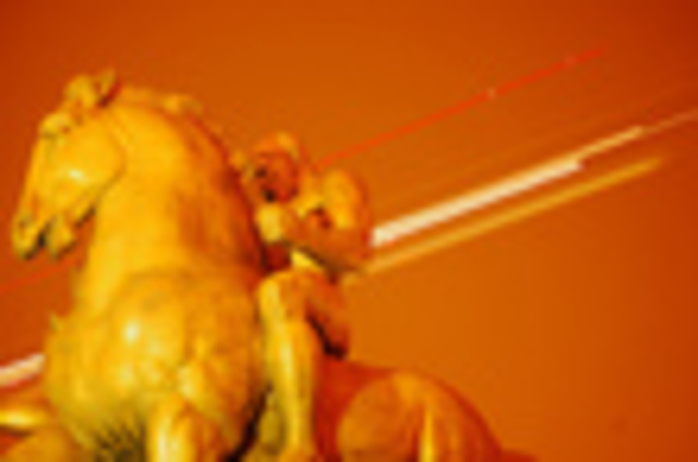 A little reminiscent of a National Geographic time-lapse shot, this shot by chip py the photo guy of a statue on the Memorial Bridge really stood out. We’ve seen the statues fly by (or crawl by) many times, but the colors are surreal and bright and the man on the horse looks like an extra in 300. The light streaks above draw our eye up the shot too, and provide a weird contrast — stone and electricity. Interesting stuff. EXIF.