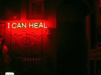 By putting on the airs of alter ego Fatima Mayfield, Stout is able to role play as a fictitious herbalist/fortuneteller who enters the arena of the shadowy and strange. Getting to know her work is like slithering into that same world. The objects on display seem to be, and probably are, charged with some mysterious energy. A hoodoo assortment called Spiritual Supplies: from New Orleans to Spanish Harlem (2007) helps believers improve their daily lives by gaining power in love and $$$. These supplies, things like Evil Go Away soap, Lucky In Love potion, candles, aerosol sprays, and patchouli oil for the desperate, gullible hippie, are lucky charms designed to magically replaces doubt and dejection. Makes you think of Don Stewart’s Green Prosperity Prayer Handkerchief infomercial – “call now and God will grace you with wealth if you purchase this high-quality felt prayer cloth!” Maybe these objects don’t hold any powers after all … but their eeriness is pretty damn convincing.