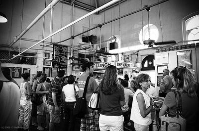 Eastern Market is still undergoing renovations to repair the major damage caused by a fire on April 30, 2007. However, vendors have been able continue to serve their customers in a temporary facility located across the street. Venture inside and you’ll find multiple inexpensive places to eat: