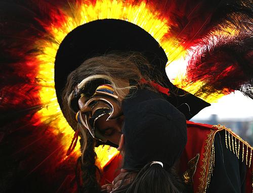 Here’s another one from the festivals this weekend, this time from FiestaDC held in Mt. Pleasant. With the surreal, vibrant colors of his headdress and the uptilted mask, it took me a few seconds to figure out what was going on here. Flickr user yonas1 snuck his camera in just in time to capture this sweet “secret kiss.” EXIF.
