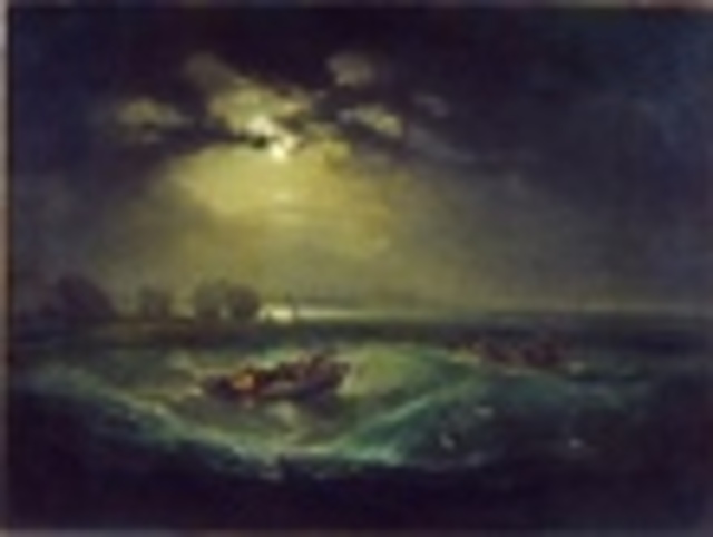 Lord Alfred Tennyson once called Turner “the Shakespeare of landscape.” One of relatively few painters who enjoyed great success and notoriety during his lifetime, at 26 he was the youngest person ever elected to England’s prestigious Royal Academy of Arts. Turner’s greatest influence was the Sublime, an aesthetic movement that celebrated the vast and infinite, particularly in a natural context. This influence is reflected in such early works as Fishermen at Sea (1796, pictured above right), which depicts human insignificance in comparison to the open sea. Despite his obvious talents, Turner found himself occasionally having to compromise some of his vision because landscape was not given respect, and so he incorporated classical elements in order to gain acceptance. An example of this is his The Temple of Jupiter Panellenius (1816), where the classical subject seems just an excuse for painting the landscape in which it is set.